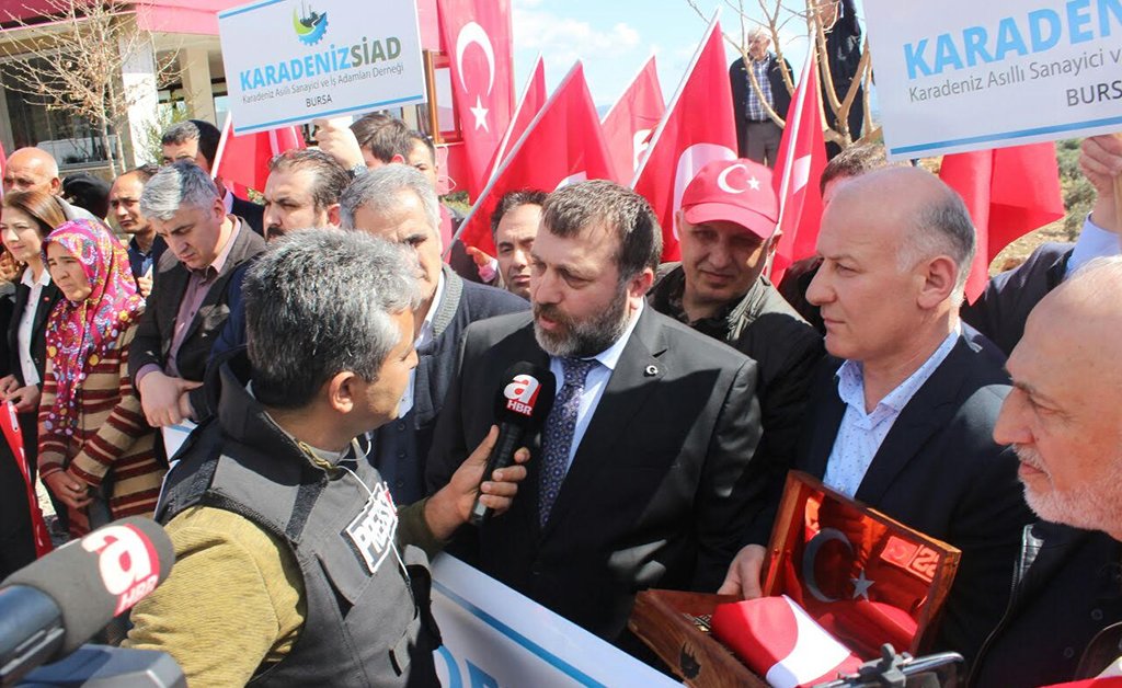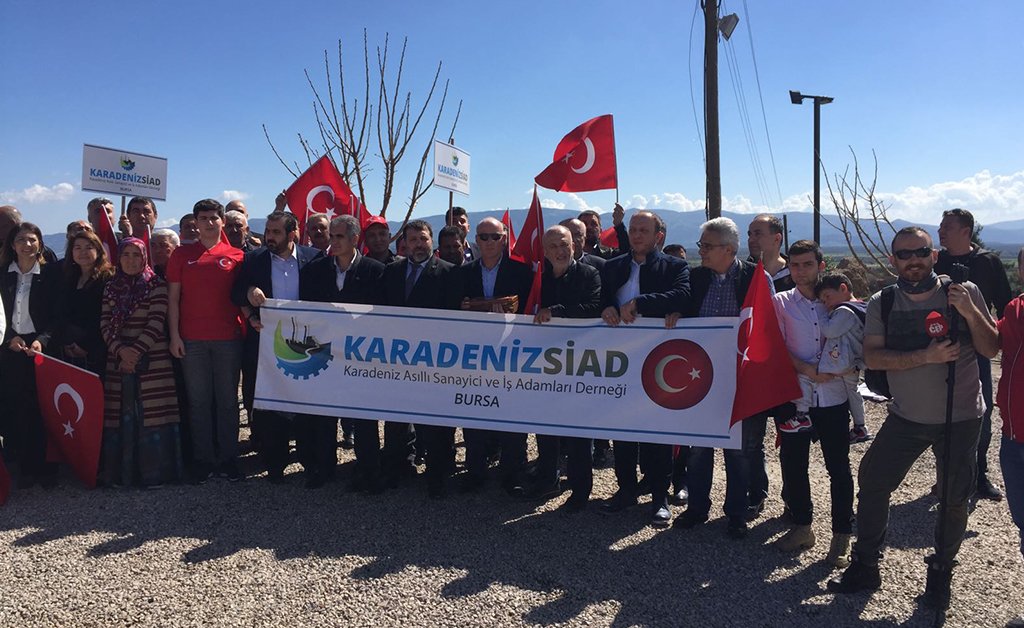 Karadeniz Asıllı Sanayici ve İşadamları Derneği (KARADENİZSİAD) Zeytin Dalı operasyonunda mücadele eden Mehmetçiğe destek amacıyla Hatay ve Gaziantep'e gitti. KARADENİZSİAD beraberinde götürdüğü Bursa ulularının kabirlerinden alınan toprakları bayrağa sarılı bir sanduka eşliğinde Komutana hediye etti.